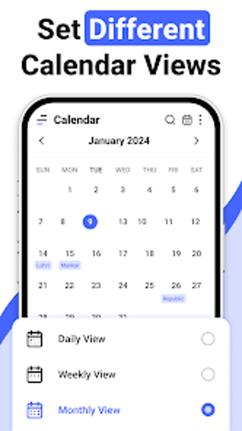 ปฏิทิน 2024 เป็นแอปพลิเคชันปฏิทินที่หลากหลายซึ่งออกแบบมาเพื่อเพิ่มการจัดการเวลาและการจัดระเบียบสำหรับผู้ใช้ แอปฟรีนี้ช่วยให้บุคคลสามารถนัดหมาย สร้างเหตุการณ์ และตั้งวันสำคัญ ทำให้เป็นเครื่องมือที่มีค่าสำหรับการวางแผนประจำวัน ด้วยฟีเจอร์ที่เตือนผู้ใช้เกี่ยวกับงานและการตั้งปณิธานของพวกเขา มันทำให้แน่ใจว่ากิจกรรมที่สำคัญจะเสร็จสิ้นตามเวลา ช่วยให้การทำกิจวัตรประจำวันมีประสิทธิภาพมากขึ้น